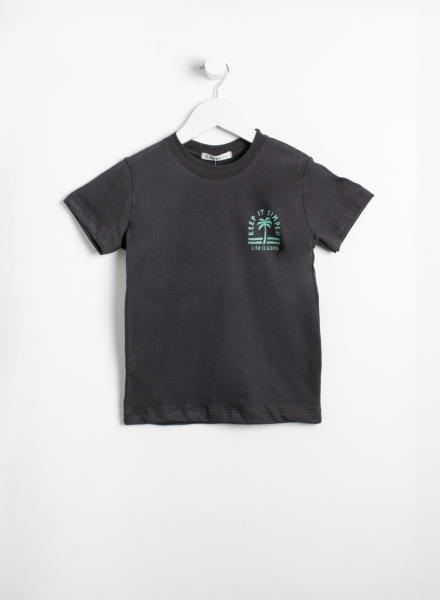 Remera manga corta de jersey con pequeña estampa con cuello de ribb.
