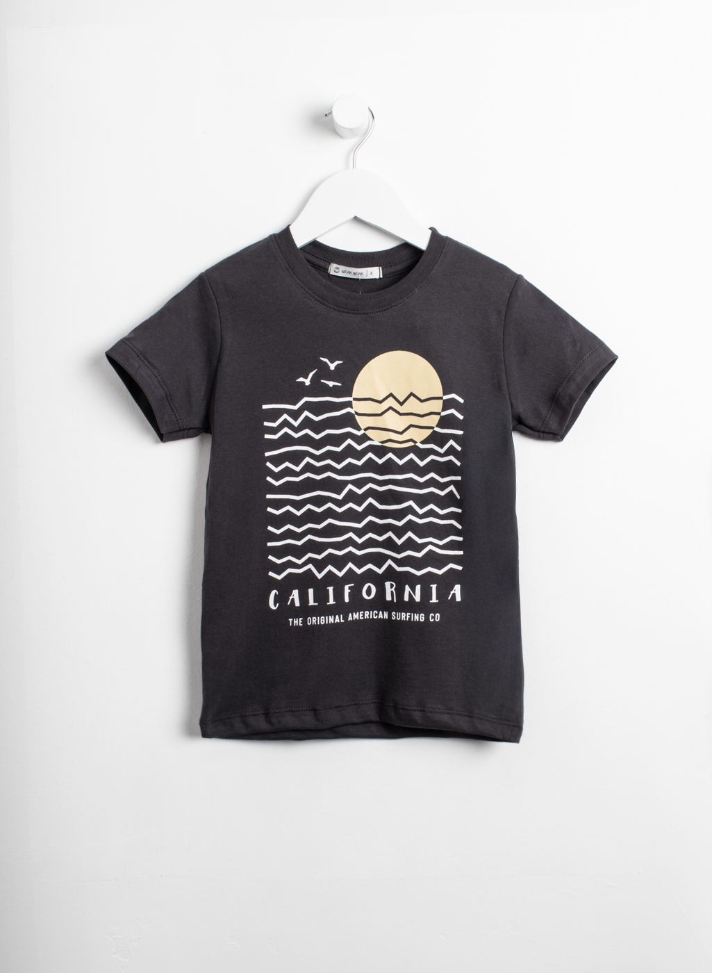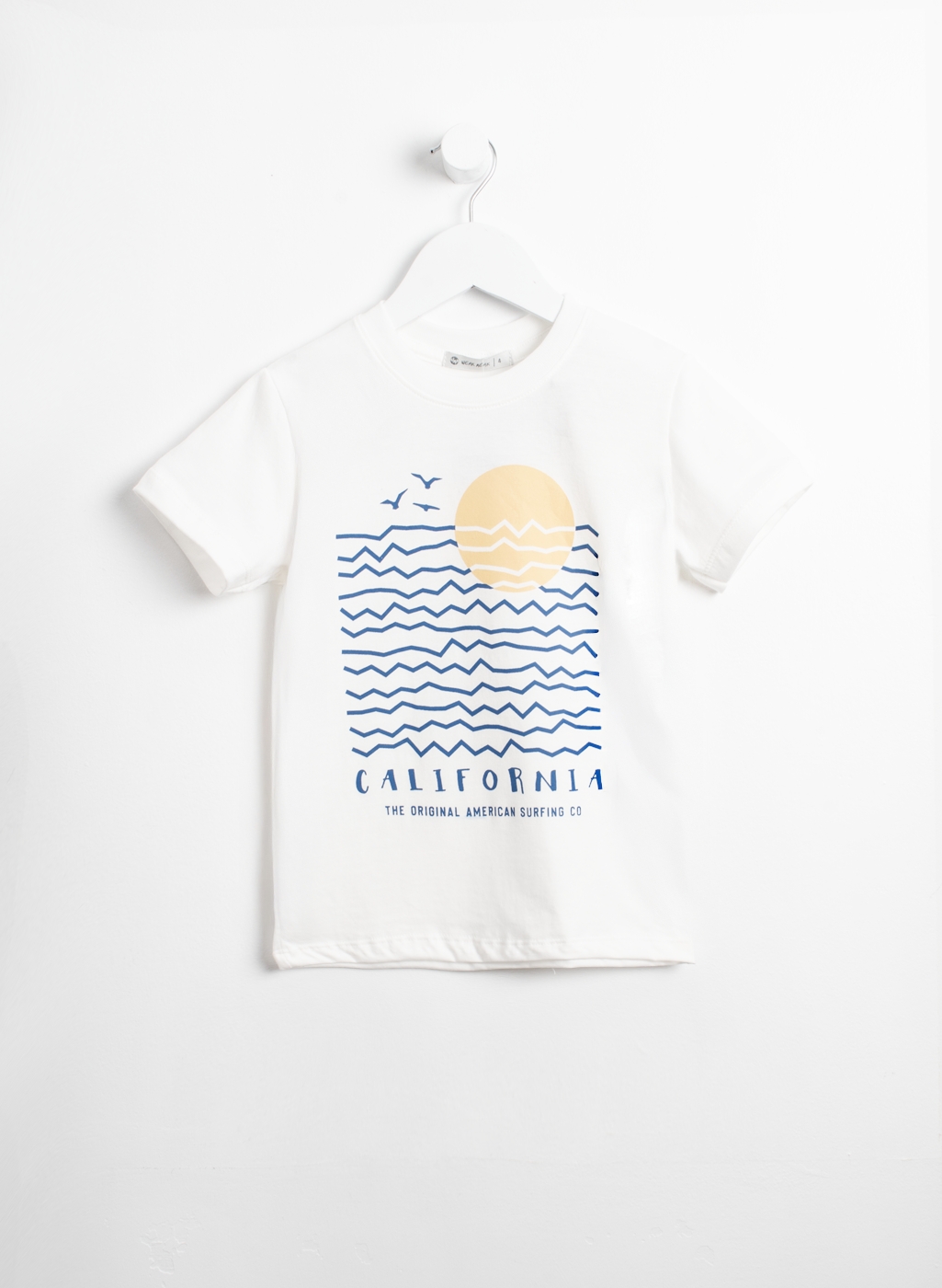 Remera manga corta de jersey, con estampa en la parte frontal y cuello de ribb.