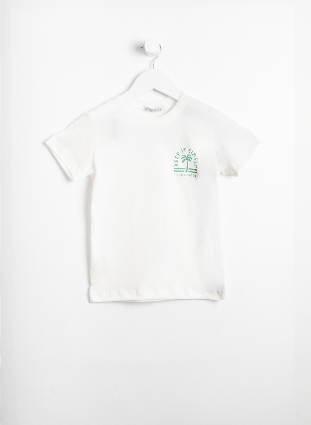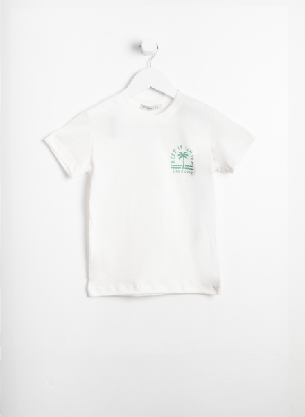Remera manga corta de jersey con pequeña estampa con cuello de ribb.