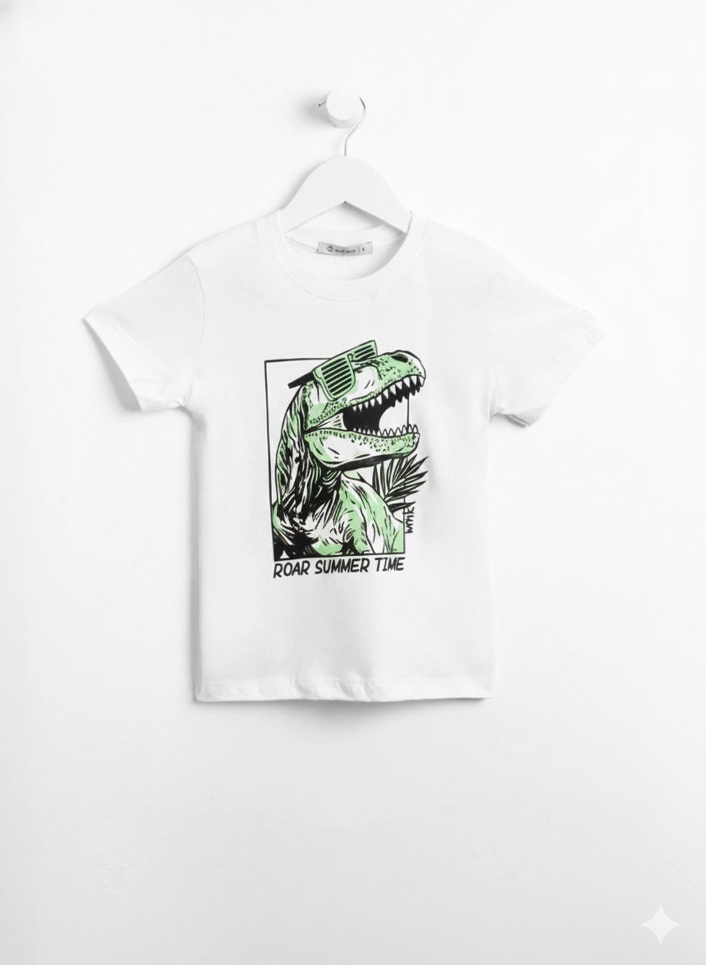 Remera manga corta de jersey con estampa frontal y cuello de ribb.